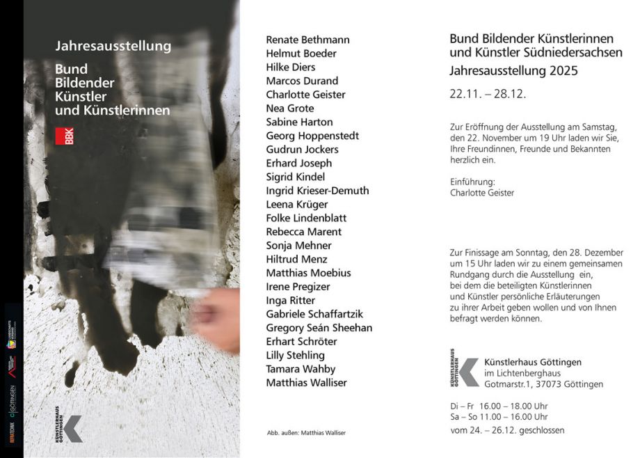 In der Jahresausstellung des BBK Südniedersachsen im Künstlerhaus geben die Künstlerinnen und Künstler Einblick in ihr Schaffen, ihre Entwicklungen und ihre Veränderungen! Die gezeigten Arbeiten sollen das Interesse an der Bildenden Kunst fördern und zu gemeinsamen Diskussionen anregen und damit das kulturelle Leben in unserer Region bereichern. Mein Beitrag zur diesjährigen Jahresausstellung ist ein Tableau aus 20 Einzelblättern mit dem Titel "LETZTE DINGE EINER TANTE"